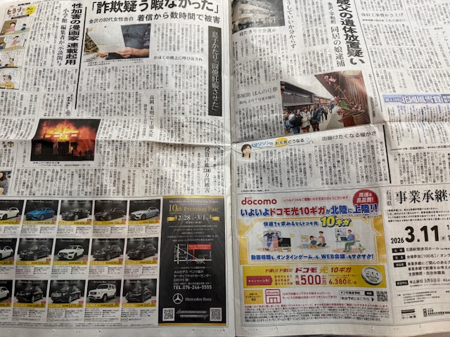 金沢の新聞。